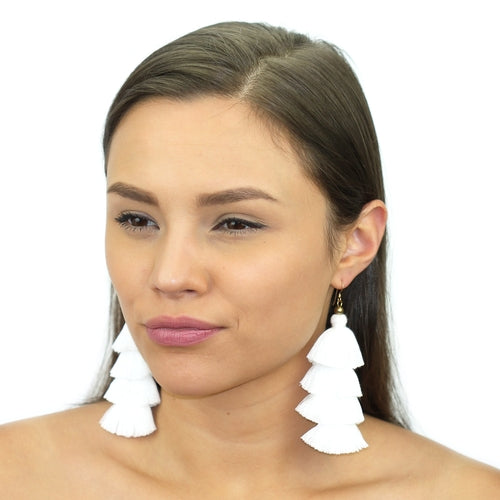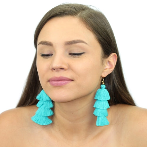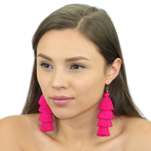 Vibrantly hued fringe earrings in a statement making silhouette.